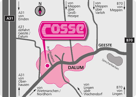 Sie erreichen uns über die A31 aus Richtung Emden und Oberhausen. An der Abfahrt Geeste/Dalum fahren Sie in Richtung Geeste. Ca. 1km nach dem Ortseingangsschild finden Sie unseren Stammsitz auf der linken Seite.